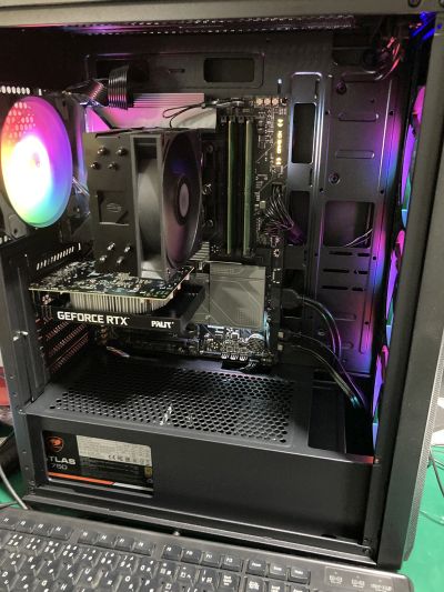 マザーボードをケースに収納し、配線、GPUを装着し、電源ON!!